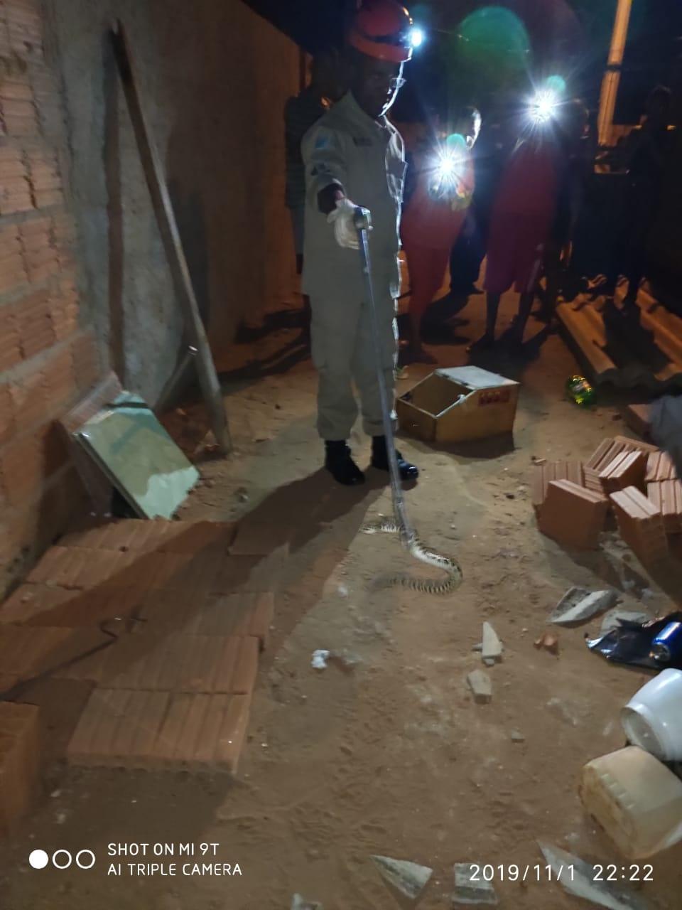 A cobra estava escondida atrás de alguns materiais de construção e assustou os moradores da Rua das Folhas, que acionaram a guarnição.