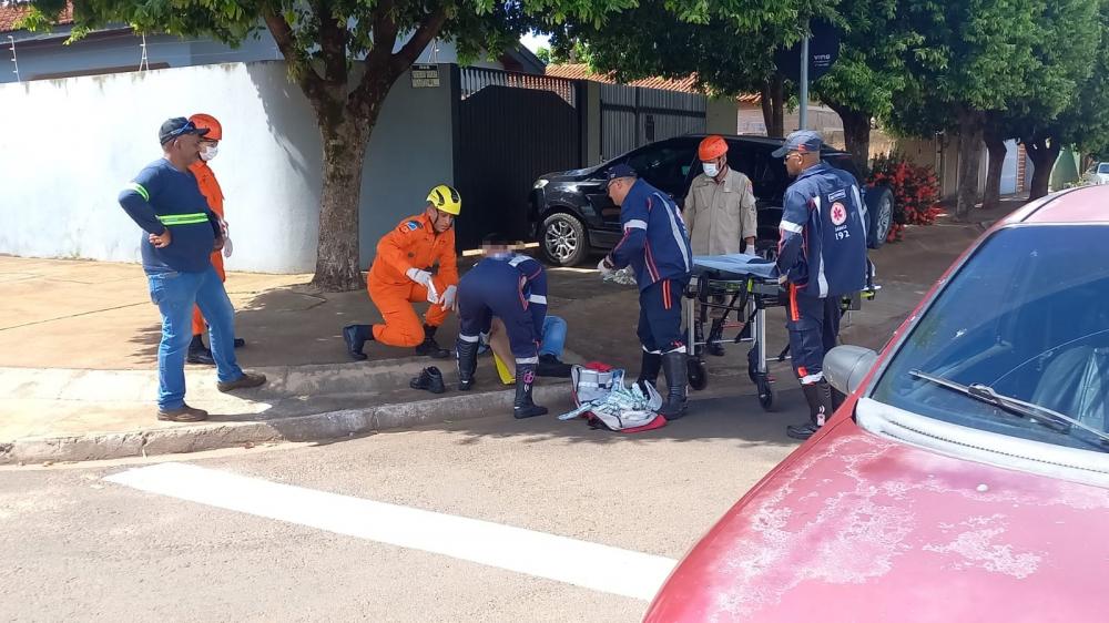 Na tarde desta quinta-feira (15), um acidente de trânsito envolvendo um automóvel e uma motocicleta mobilizou diversas equipes de emergência no bairro Jardim Morumbi, em Três Lagoas.