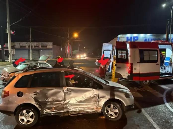 Na noite deste sábado (24), um acidente foi registrado no cruzamento da Avenida Capitão Olinto Mancini com a Jary Mercante, no Jardim Primaveril.