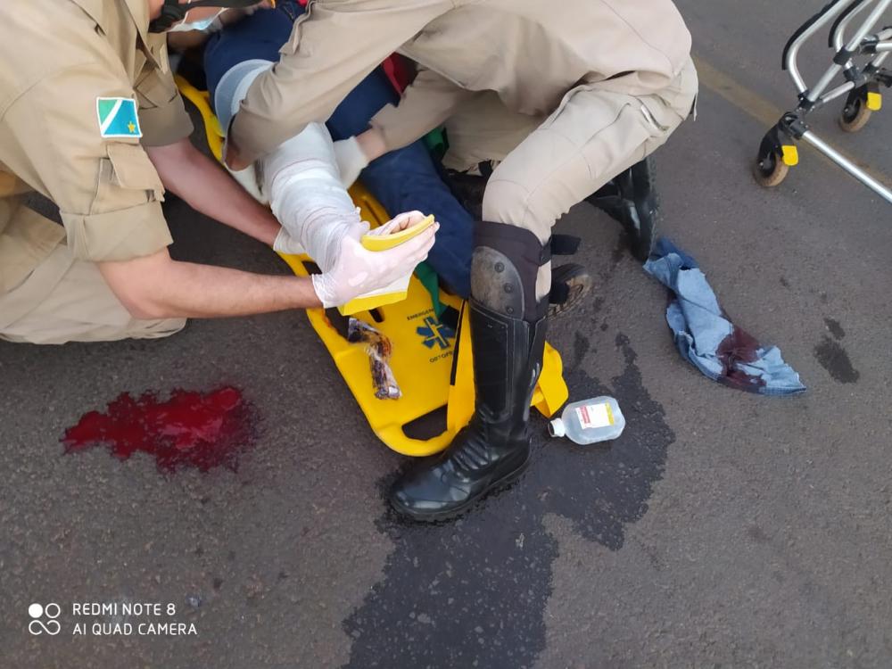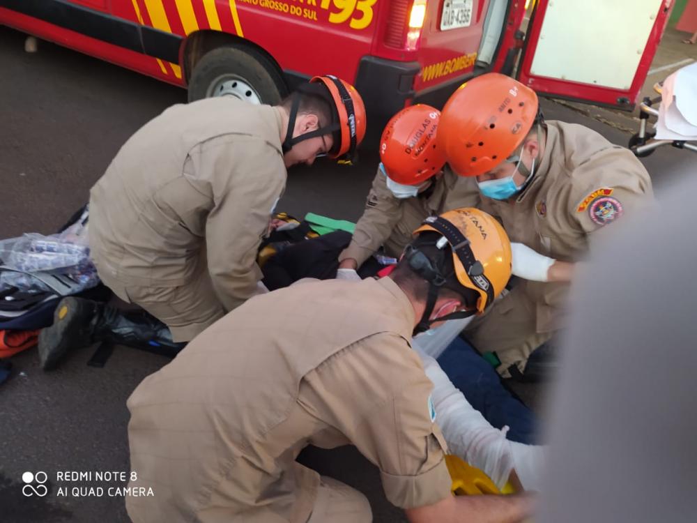 Devido os ferimentos graves em sua perna, equipes do Corpo de Bombeiros foram chamados e no atendimento à vítima, constaram uma possível fratura em sua perna