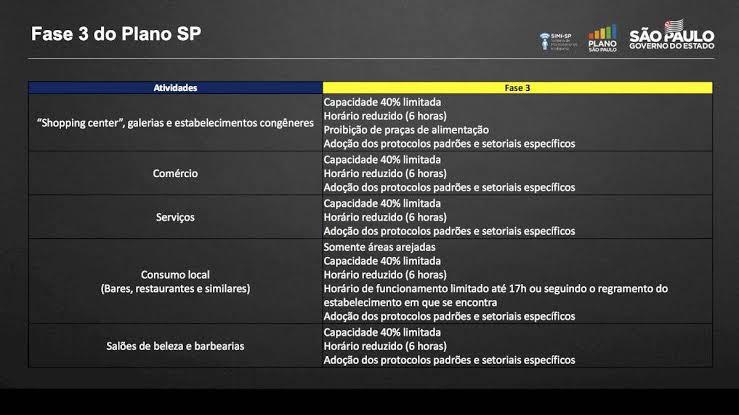 O Plano São Paulo prevê a retomada gradual da economia, de acordo com a evolução da epidemia, levando em consideração o número de casos, de internações e de óbitos, além dos índices de capacidade do sistema de saúde, que leva em conta a ocupação de leitos de UTI e também o número de leitos para covid-19 disponíveis para cada 100 mil habitantes.