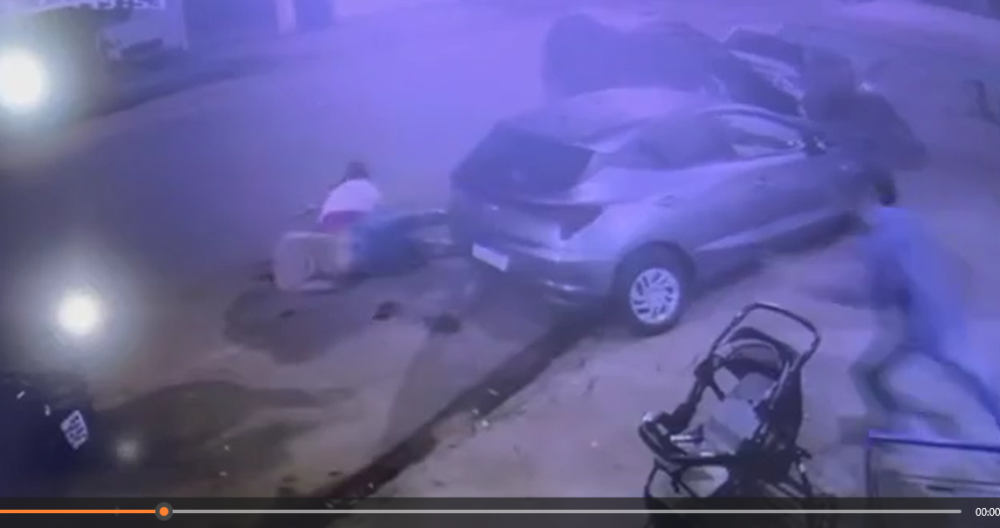 O que aconteceu? O motorista do CrossFox perdeu o controle do carro, atropelou um pedestre e quase atingiu uma mulher, que só escapou porque percebeu a tempo e conseguiu se esquivar.