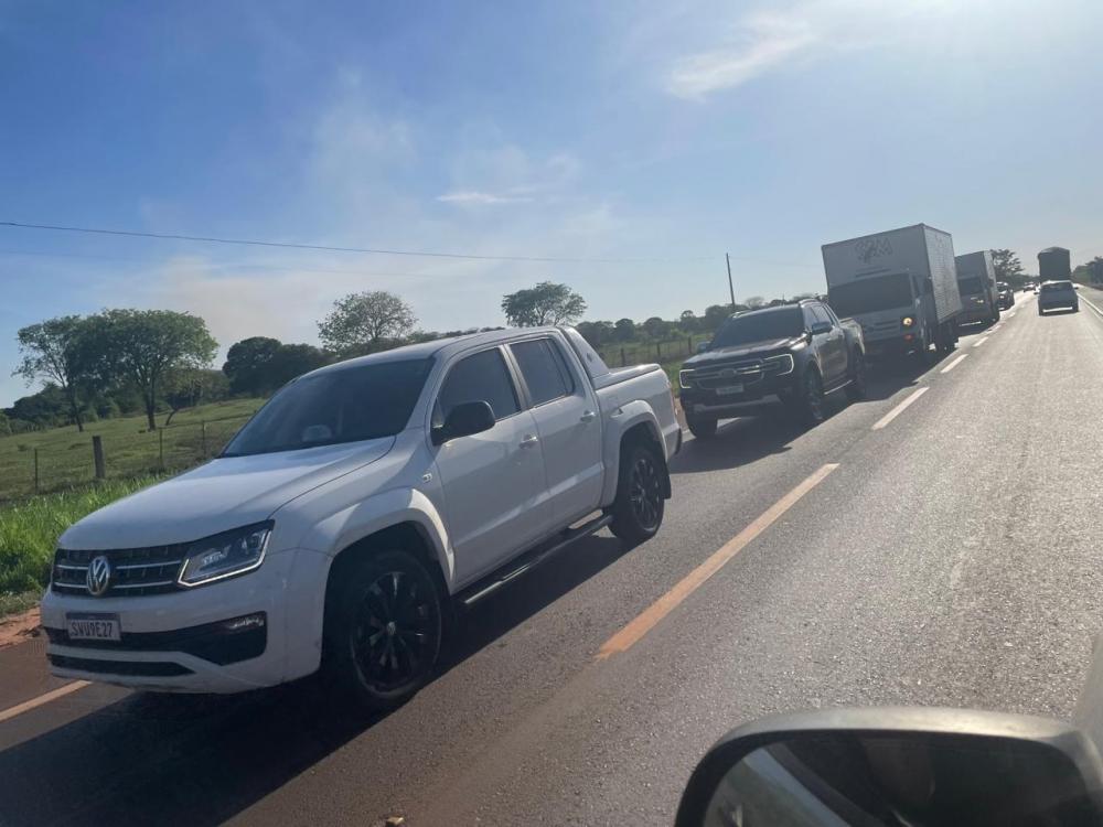 Na tarde desta sexta-feira (24) foi marcado por um grande congestionamento na BR-262, na saída de Três Lagoas (MS) em direção a Campo Grande. Um bitrem carregado apresentou problemas na carga e acabou ficando atravessado na pista, bloqueando parte da rodovia e exigindo atenção redobrada dos motoristas.