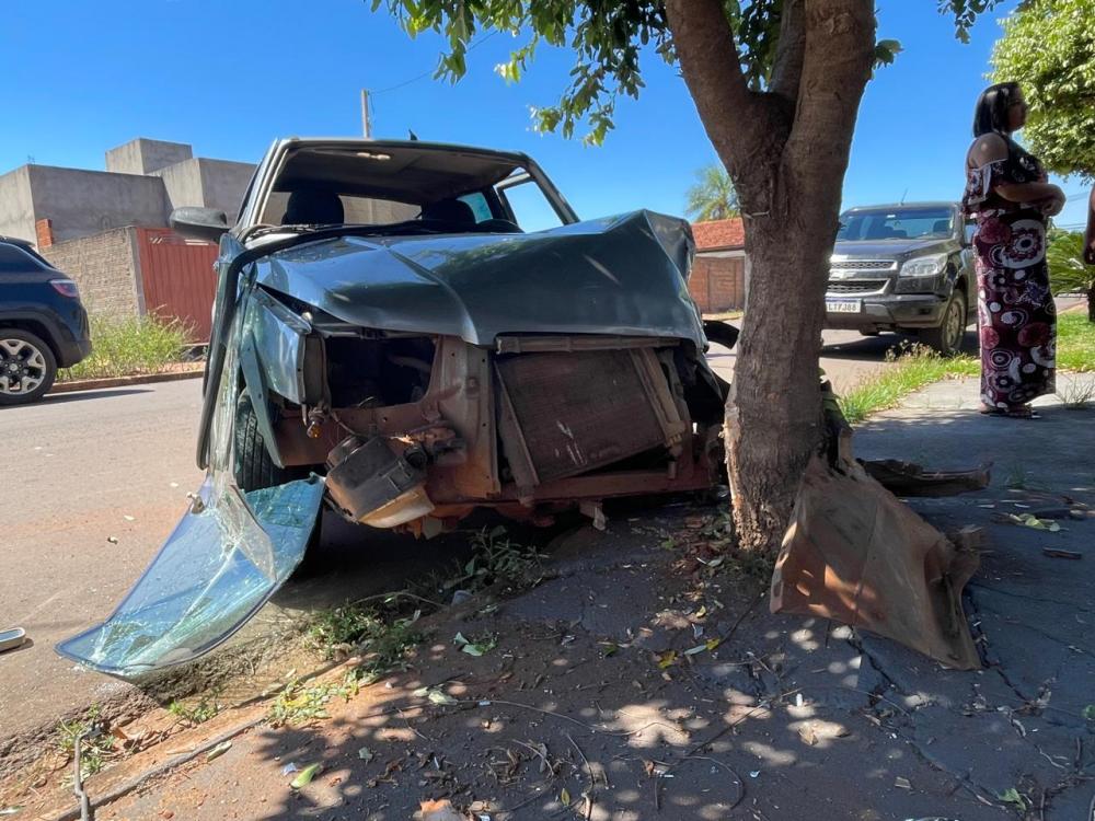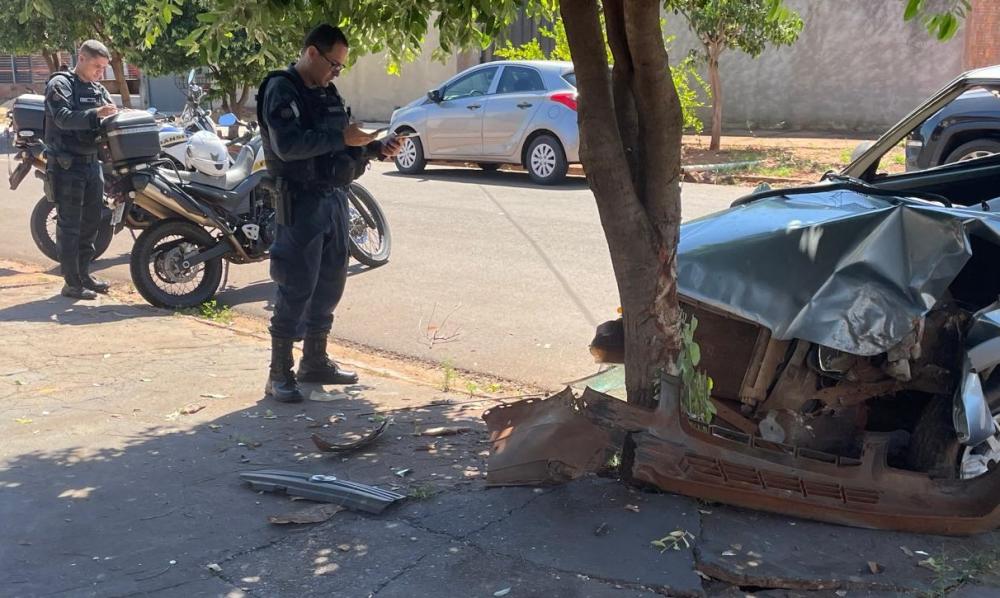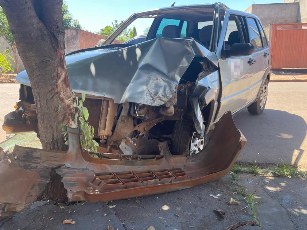 Casal “dentro do litro” causa acidente: motorista em regime condicional bate em árvore e quase invade casa em Três Lagoas