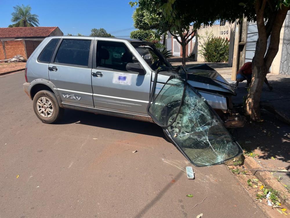 Um motorista de 40 anos, que segundo informações policiais, conduzia um veículo Fiat Uno em alta velocidade, perdeu o controle e bateu violentamente contra uma árvore e por pouco não invadiu uma residência. Por sorte nenhuma pessoa estava na calçada.