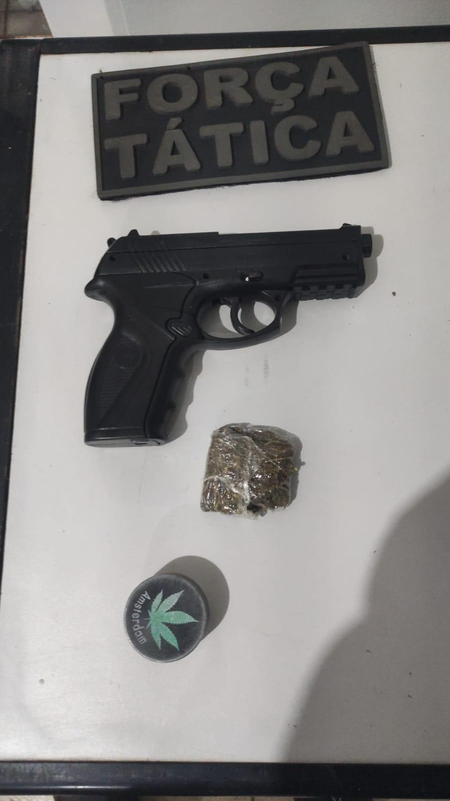 Deu ruim: Homem enfrenta Força Tática da PM, leva tiro de borracha e acaba preso com droga e simulacro de arma no Jd. Alvorada