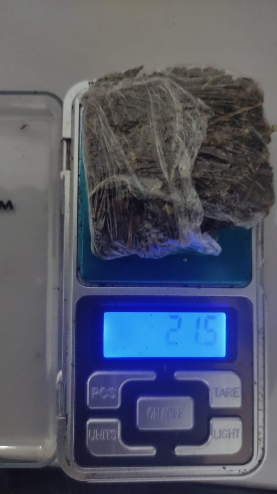 Durante uma revista pessoal no homem, foi localizado cerca de 20 gramas de maconha e um dichador.