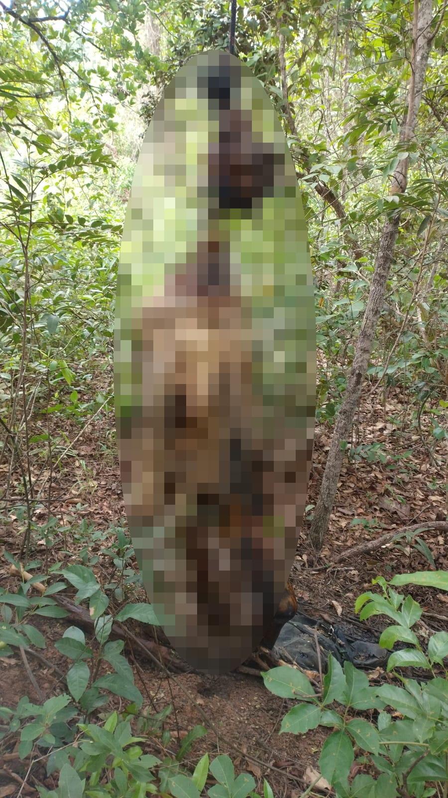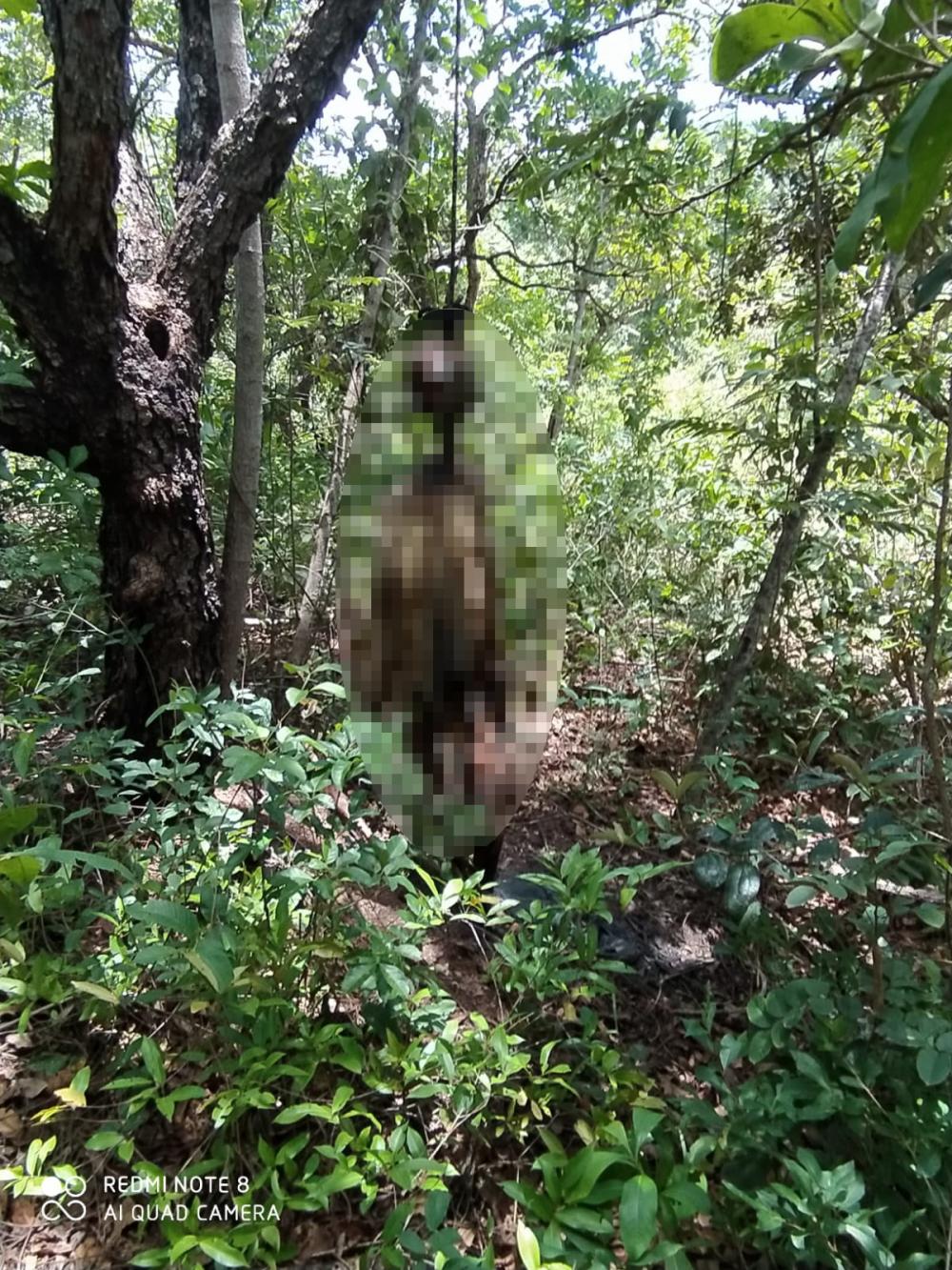 Os policiais foram informados sobre o ocorrido após uma mulher que estava na mata colhendo raízes e ervas e acabou achando o corpo do homem, em estágio avançado de decomposição, quase totalmente esqueletizado, suspenso pelo pescoço por uma corda, presa a uma árvore. Os procedimentos iniciais foi em preservar o local.