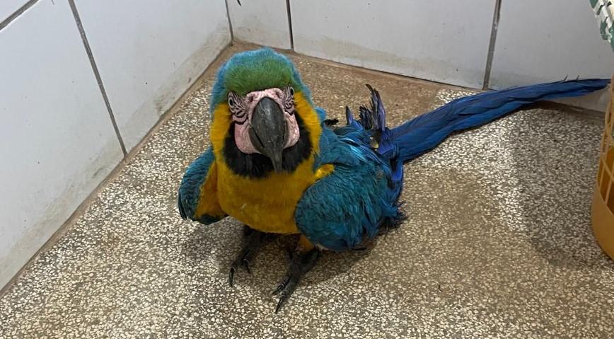 Uma Arara-azul, espécie símbolo do Pantanal e patrimônio natural do Brasil, foi resgatada em Três Lagoas (MS) neste sábado (25).