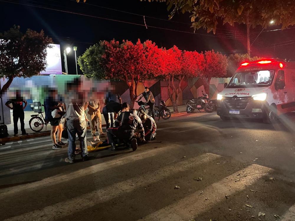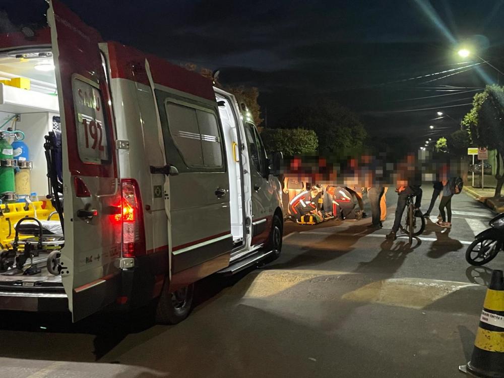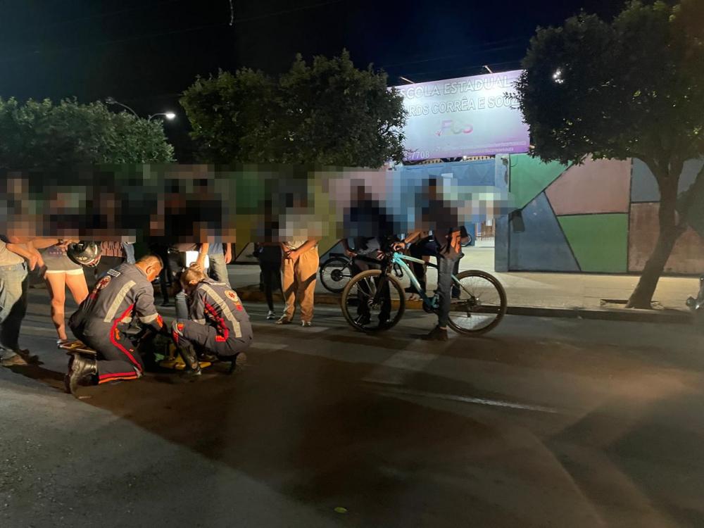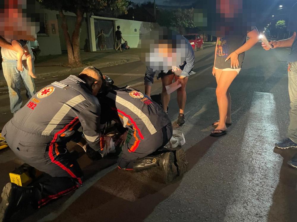 Garoto de 11 anos sofre queda de motocicleta em frente à escola em Três Lagoas e é socorrido pelo SAMU