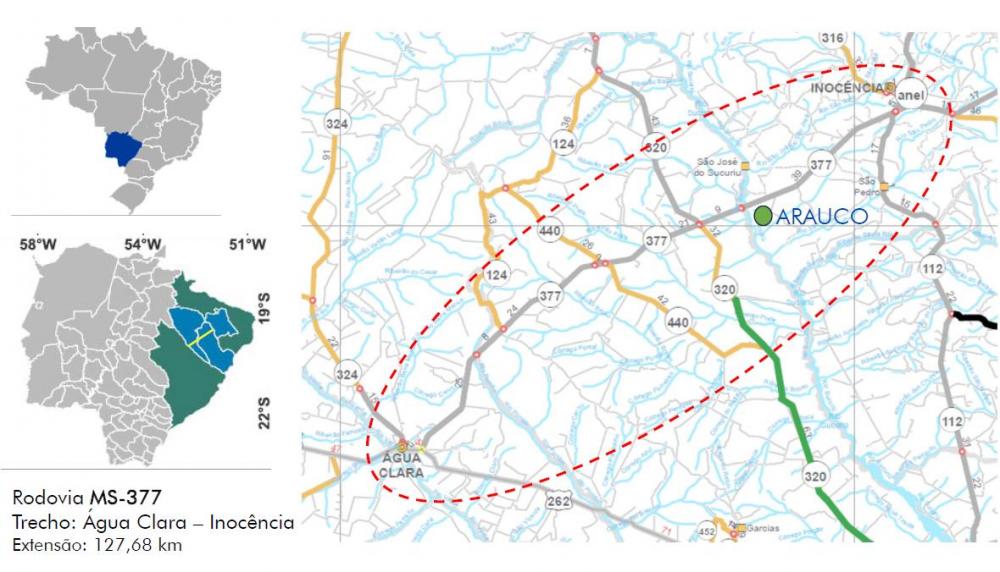 A MS-377, no trecho que vai do entroncamento da MS-320 até Inocência, será a primeira rodovia estadual de Mato Grosso do Sul a receber pavimento