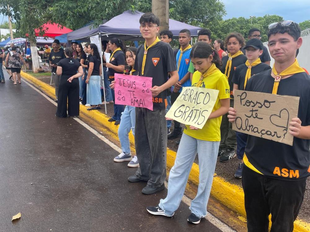 Com lindas canções de fé e esperança, o grupo tocou o coração de quem passava pelo local, levando mensagens de conforto e paz. A ação foi realizada pela Igreja Adventista do Sétimo Dia de Três Lagoas, junto com o Clube de Desbravadores Falcões do Leste, também distribuíram água mineral gratuitamente aos visitantes.