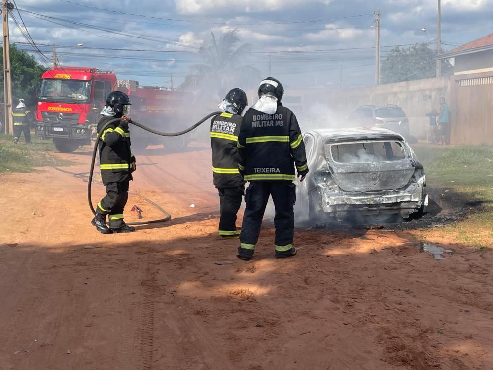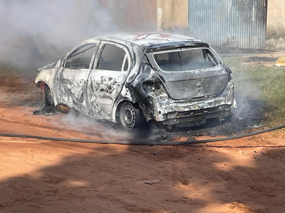 Eles haviam se separado nesta sexta-feira (27), mas, neste sábado, ele foi até a residência da mulher, a agrediu e incendiou o carro. O carro foi completamente destruído, resultando em perda total.