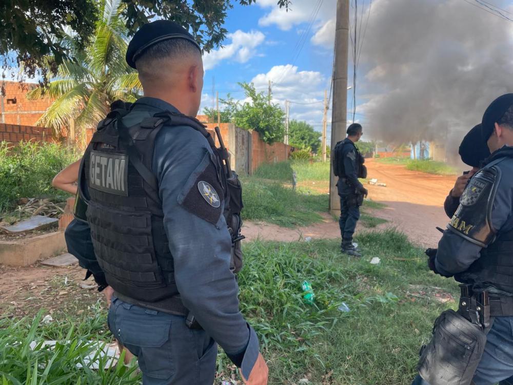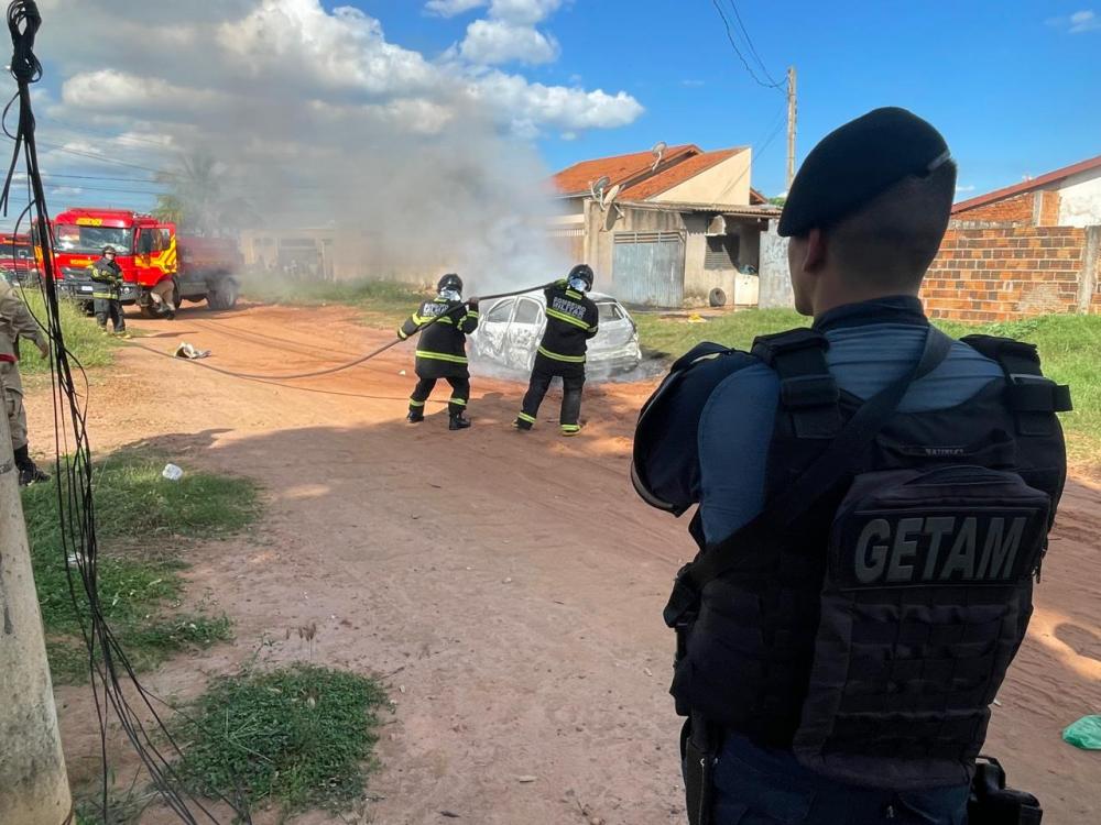 A ocorrência foi atendida pela equipe do GETAM da Polícia Militar, que acionou o Corpo de Bombeiros para controlar as chamas e evitar que o fogo se alastrasse. Após o ataque, o agressor fugiu do local e, até o momento, o acusado de 32 anos não foi localizado.