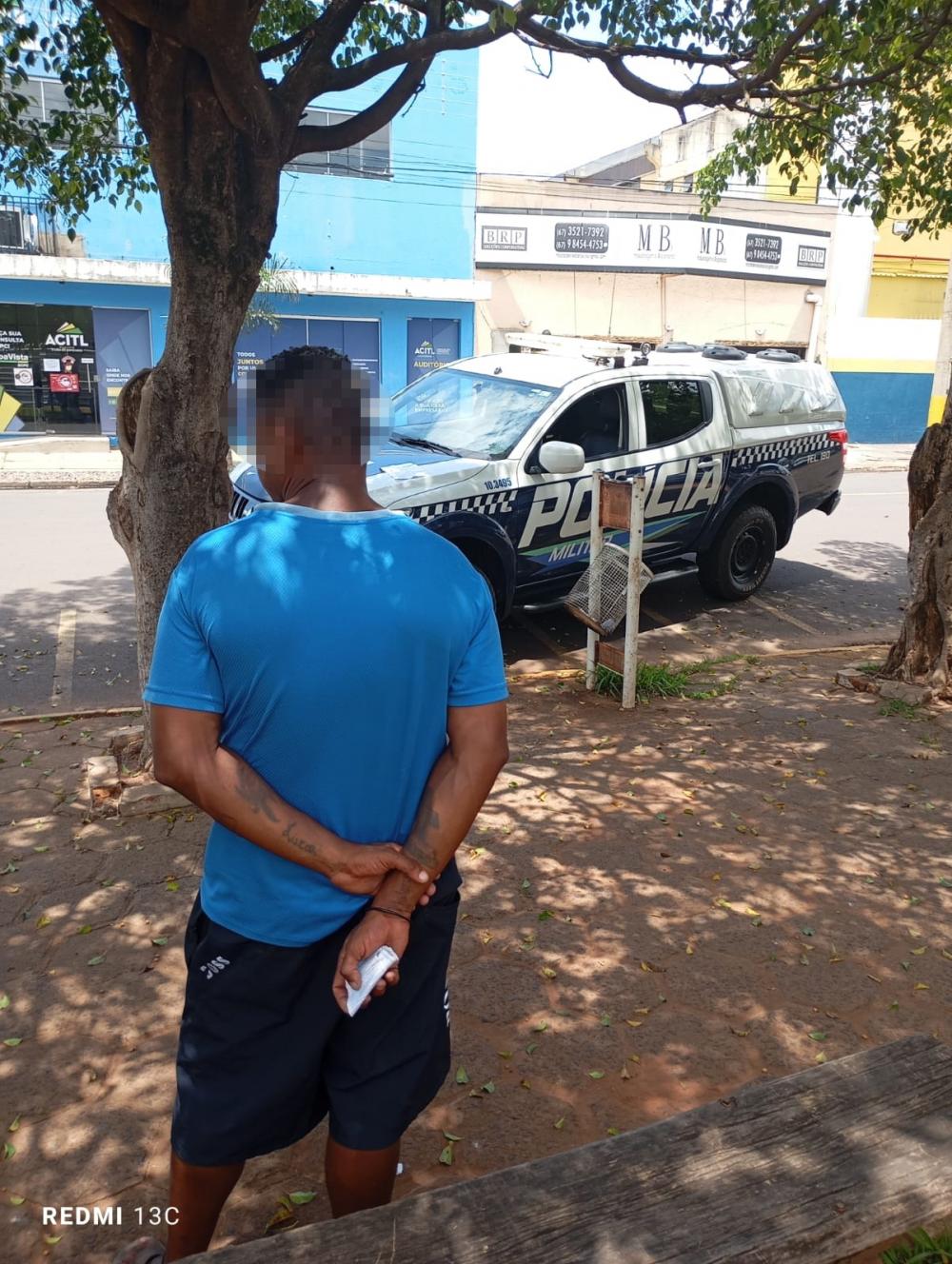 O homem abordado estava causando transtornos e incomodando as pessoas presentes no local.