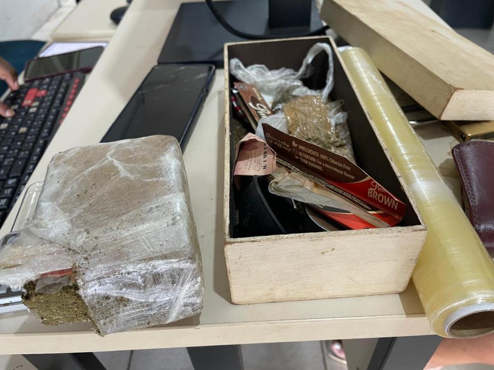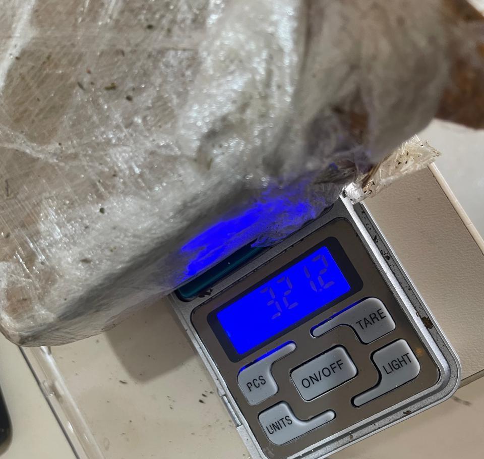 Durante as buscas, os policiais localizaram pequenas porções de maconha na pia da cozinha, além de plástico filme, uma balança de precisão no forno do fogão e um tablete maior da droga guardado na geladeira — caracterizando um suposto tráfico de entorpecentes.