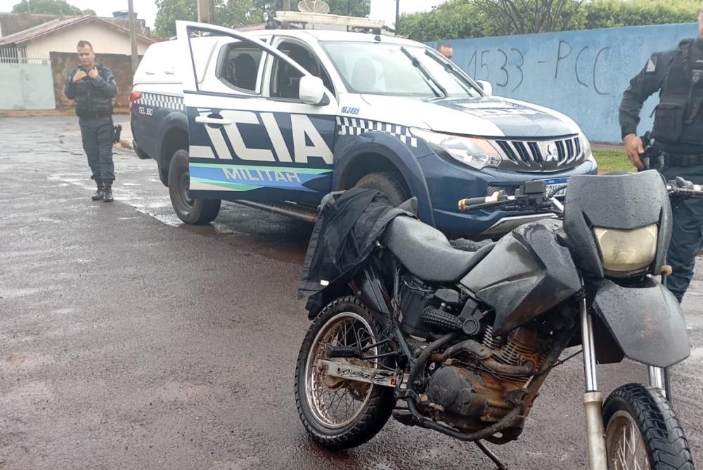A ocorrência foi registrada por volta das 17h10, na Rua 29, após a equipe visualizar dois homens em atitude suspeita ao lado de uma motocicleta Honda Bros.