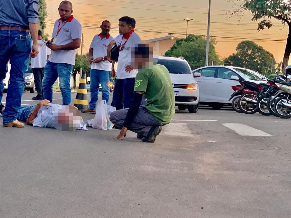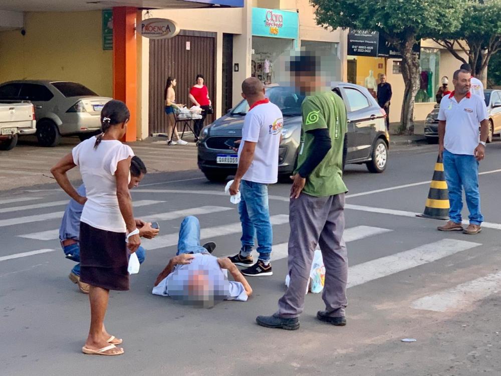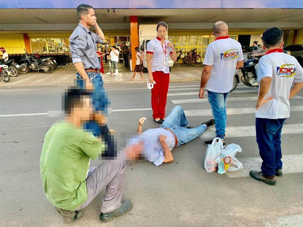 Veja o vídeo: Idoso que atravessava faixa de pedestre na frente de supermercado é atropelado por moto-entregador