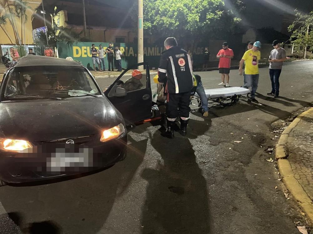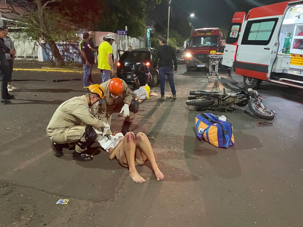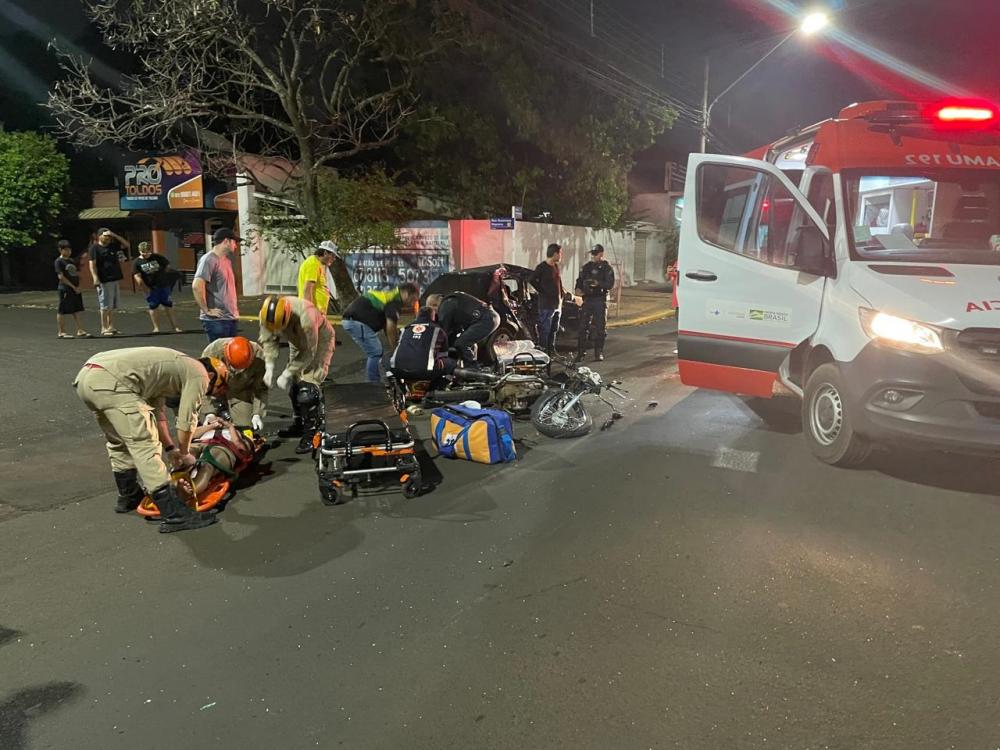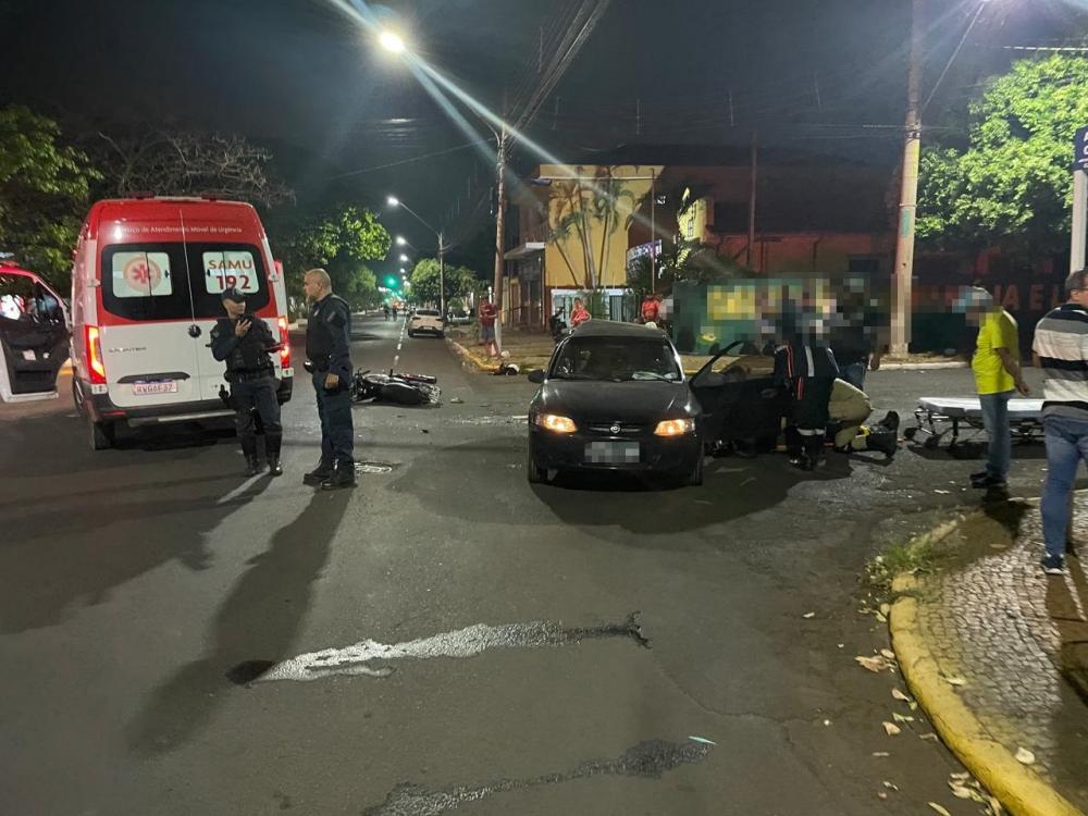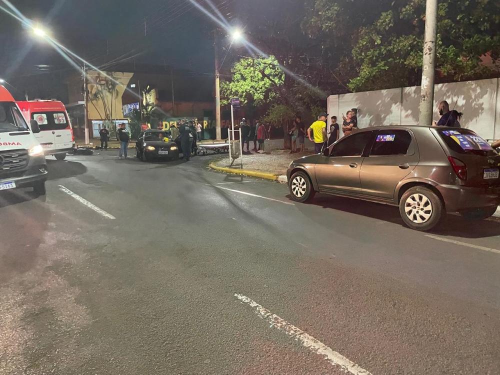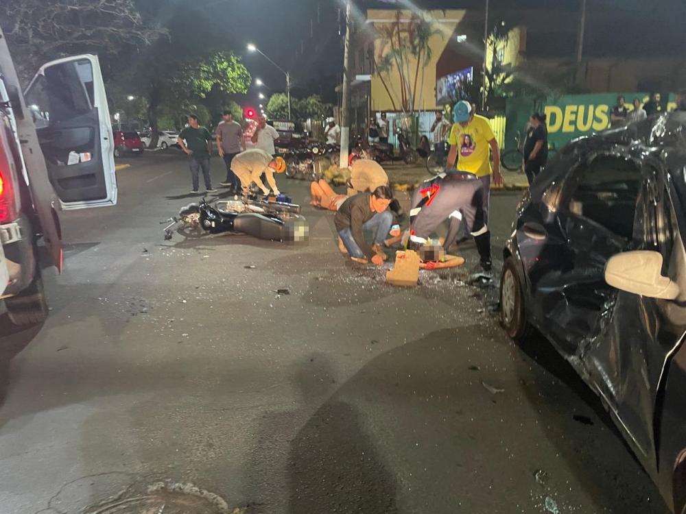 TRÊSLAGOAS: Um grave acidente foi registrado na noite desta quarta-feira (02) envolvendo moto e carro no cruzamento da Avenida Capitão Olinto Mancini e Rua Generoso Siqueira.