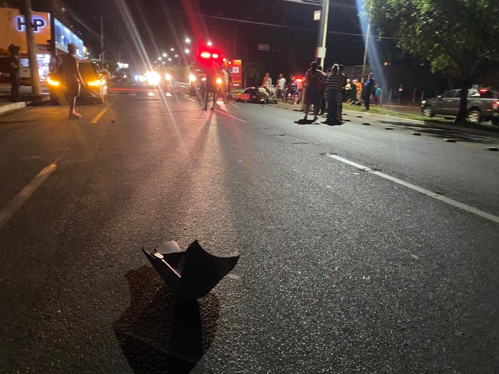 Moto esportiva bate violentamente em carro e atinge outros dois veículos em Três Lagoas