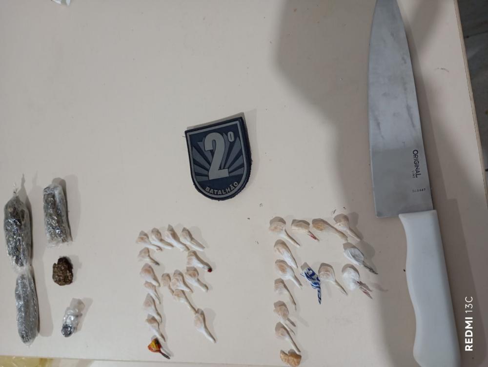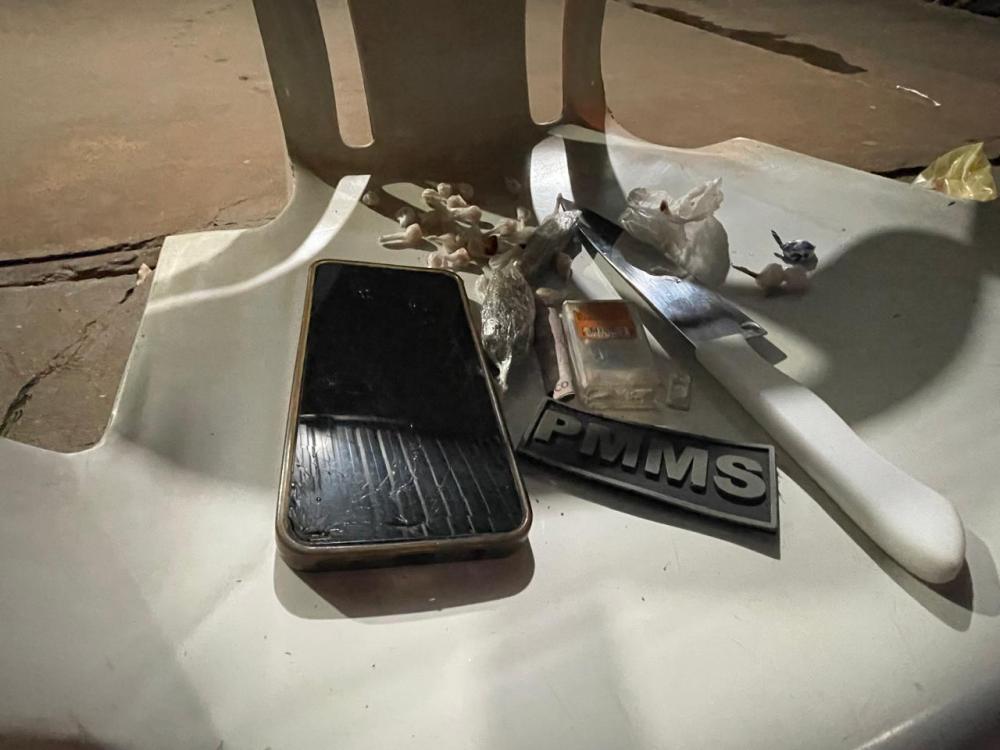 No local ainda foi apreendida uma faca e um celular que foram encaminhados para análise