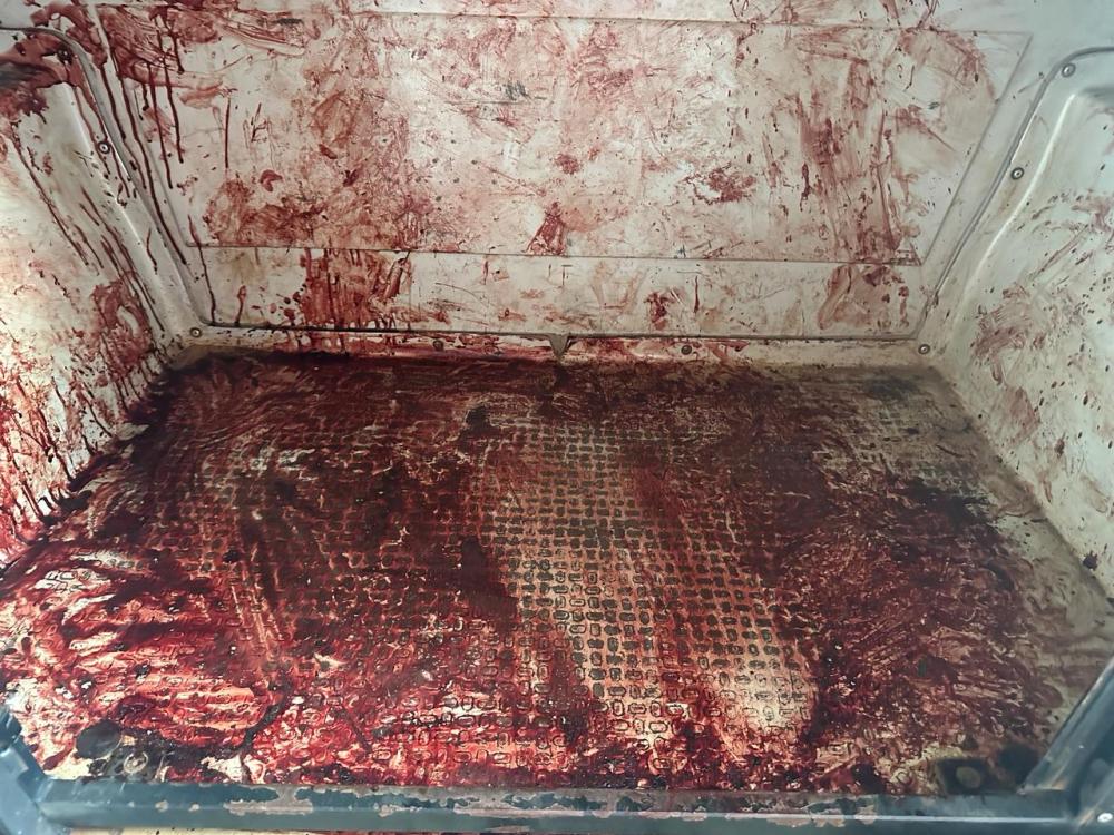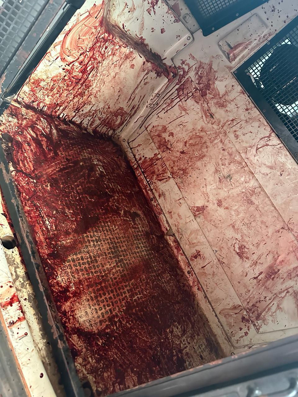 O compartimento da viatura ficou suja de sangue ao resgatar o homem
