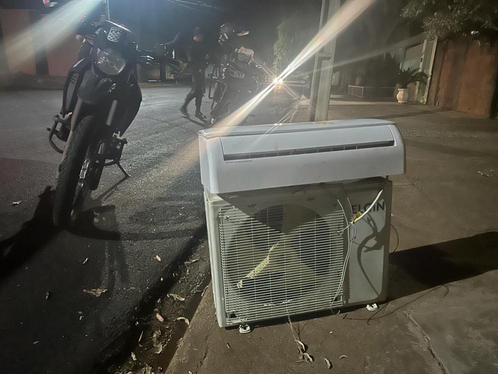 O policial de imediato acionou a Polícia Militar que enviou uma equipe do GETAM ao local que prendeu o homem de 46 anos em flagrante, quando ainda carregava o ar condicionado pela Rua Manoel Rodrigues Artez, distante 300 metros do local do furto.