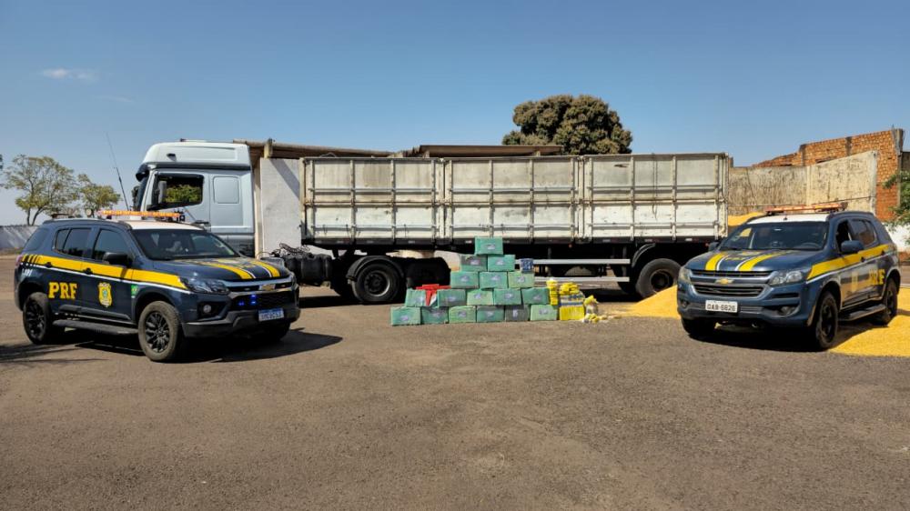 PRF apreende mais de 450 kg de drogas escondidas em carga de milho em Três Lagoas