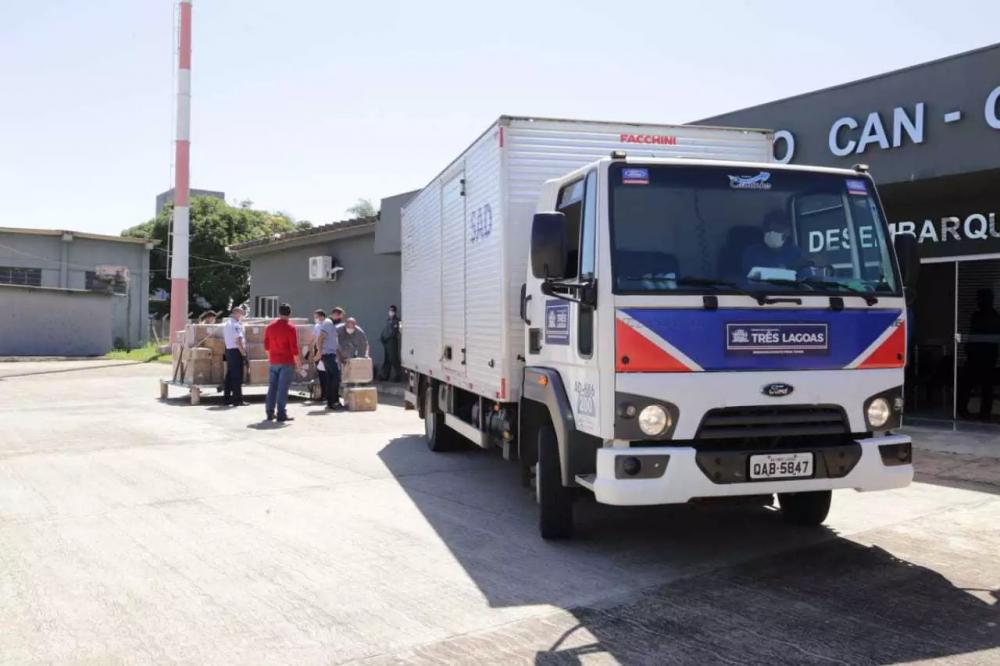 O material, importado da China, foi recebido no início da tarde deste sábado (18), na Base Aérea de Campo Grande, pelo secretário de Estado de Saúde, Geraldo Resende; titular da Secretaria de Estado de Meio Ambiente, Desenvolvimento Econômico, Produção e Agricultura Familiar (Semagro), Jaime Verruck; e pelo secretário Municipal de Governo e Políticas Públicas de Três Lagoas, Daynler Martins Leonel, este último que representou o prefeito Angelo Guerreiro no ato de entrega.