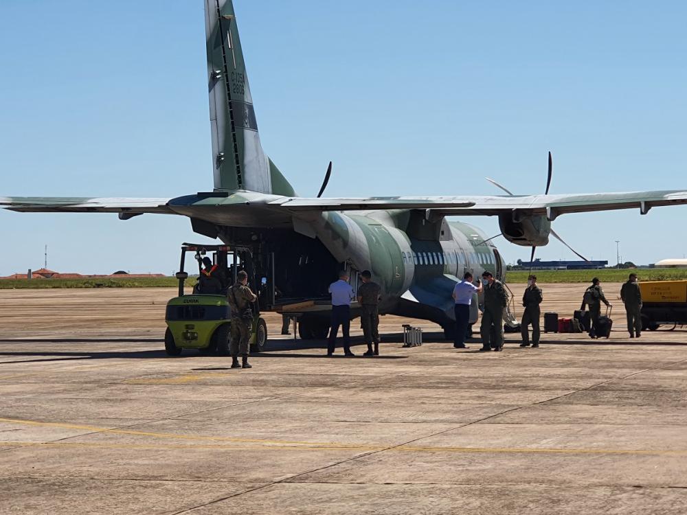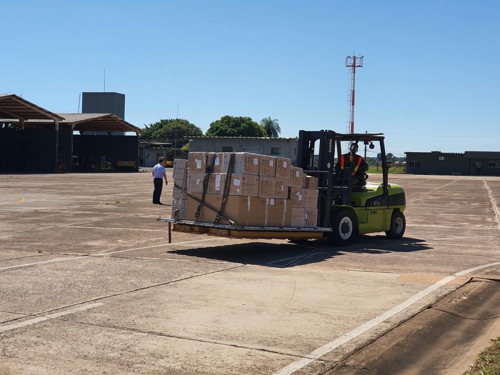 O material, importado da China, foi recebido no início da tarde deste sábado na Base Aérea de Campo Grande