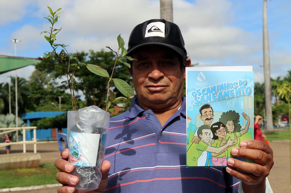 Na oportunidade em que eram abordadas para transmitir a mensagem do Dia Mundial da Água, as pessoas que passaram pela Praça Senador Ramez Tebet também receberam mudas de árvores frutíferas e ornamentais, panfletos educativos de informações sobre água e saneamento e outros brindes, alusivos a esta data comemorativa.