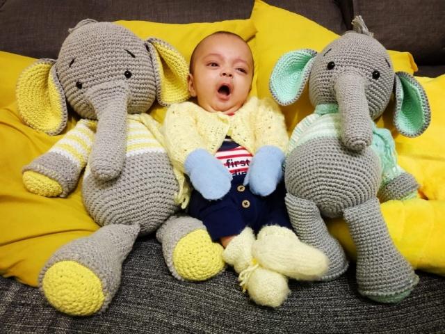 Rafael também ganhou seus presentinhos, os elegantes de crochê (Foto: Arquivo pessoal)