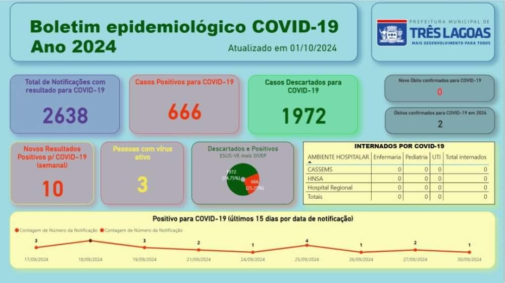 Nesta terça-feira (1º de outubro), o setor de Vigilância Epidemiológica da Secretaria Municipal de Saúde (SMS) divulgou o Boletim Covid-19.