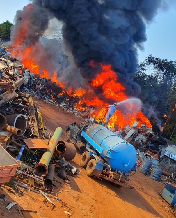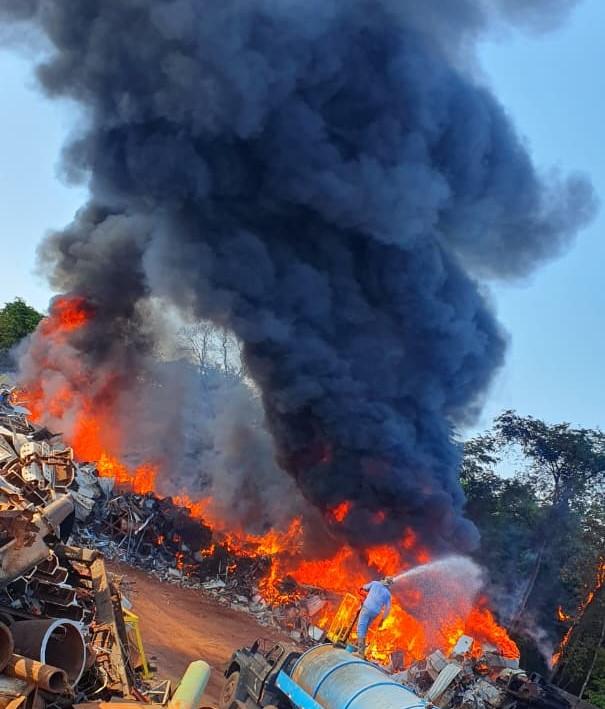 O fogo consumiu uma enorme quantidade de material reciclável, gerando prejuízo significativo e chamando a atenção de moradores de várias regiões da cidade devido a fumaça intensa.