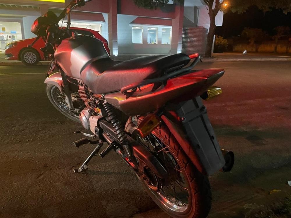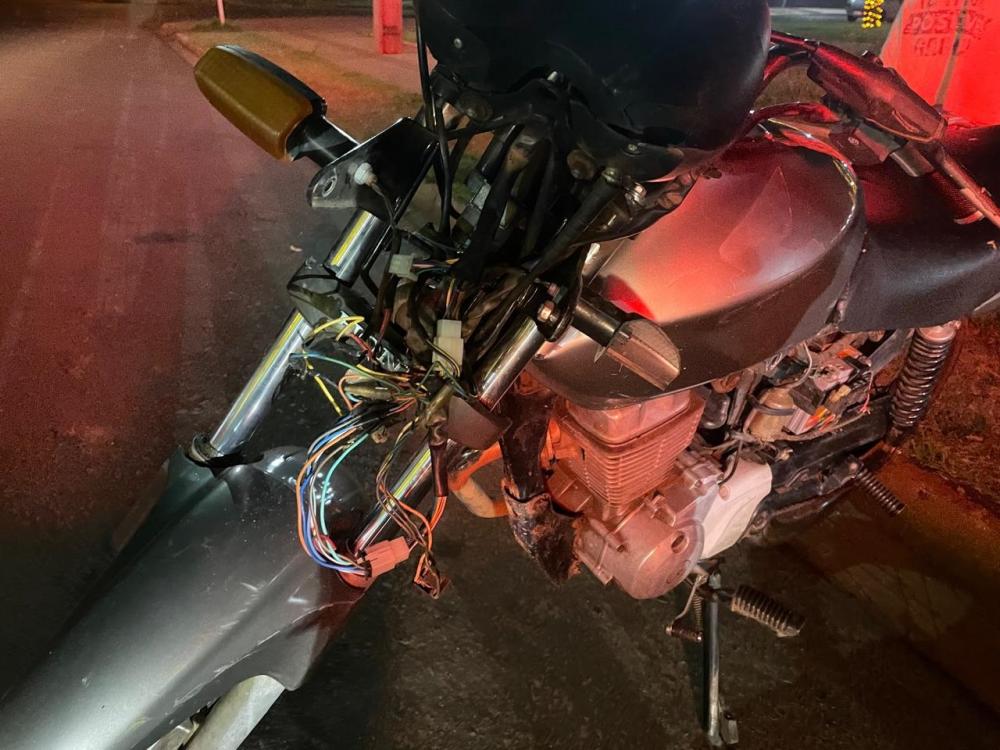 O veículo estava sem a placa de identificação e com avarias na parte frontal da moto