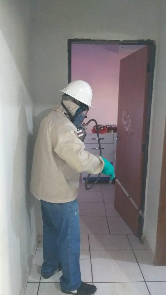 O bloqueio químico é uma outra ação que é realizada, usando a pulverização costal manual de inseticida próprio em todos os cômodos das residências, onde foi constatada a presença do mosquito, vetor da Leishmaniose.